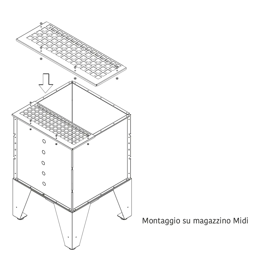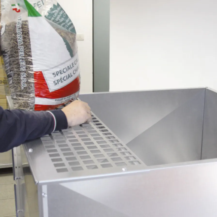 The bag support grid is designed exclusively for the Midi line and provides a practical, clean solution for refuelling stock tanks. By placing the fuel bag directly onto the grid and cutting it with a cutter, the biomass falls straight into the tank without the need to lift or manoeuvre the bag, significantly reducing effort and preventing spillage.