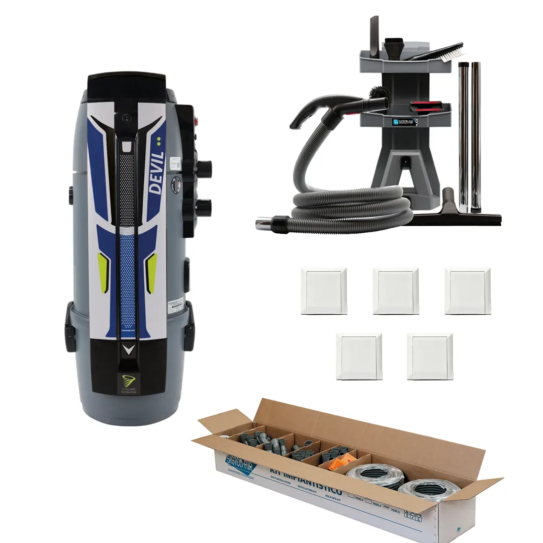 Devil 450 Complete Central Vacuum System by Cleanoop is the ultimate solution for creating a fully equipped, ready-to-install central vacuum system in homes up to 450 m².