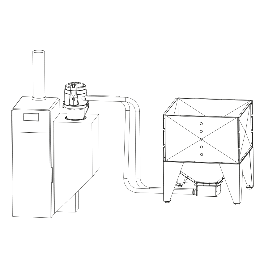 The Double Pipe Box is compatible with most biomass suction and feeding systems.