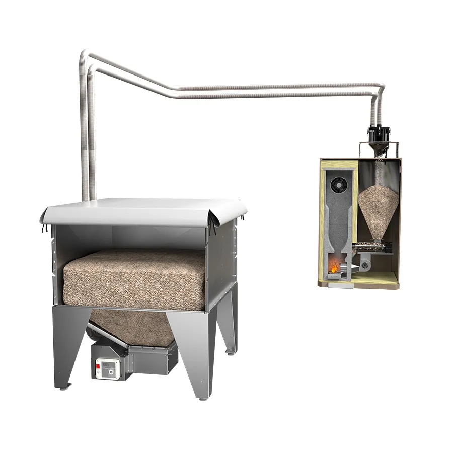 - Total automation: the system automatically vacuums and doses the pellets into the boiler tank, maintaining the optimal fuel level.