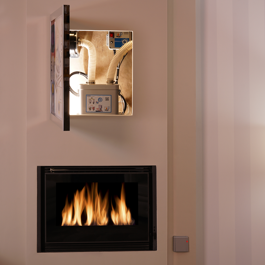 With Fire Pod, you’ll never again need to worry about the fatigue of manual refilling. The system automatically vacuums pellets or other fuels directly from bags or containers placed near the fireplace, thanks to the suction lance included in the package. Save time and energy while enjoying a cleaner, simpler and more comfortable heating experience.