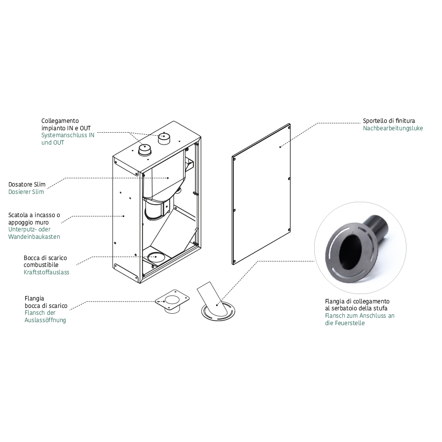 Thanks to its compact structure and integrated technology, Fire Tank fits perfectly into residential and professional installations. It is the ideal solution whenever a biomass appliance requires continuous, safe and automated feeding.