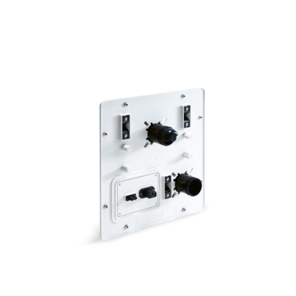 The Installation Template for Sistem Cube is a pre-wired wall mounting frame developed to make the installation of the Sistem Cube central vacuum unit simple, fast, and precise. It connects directly to the central vacuum piping and can be positioned indoors or outdoors, thanks to its IP44 protection rating that ensures resistance to dust and moisture.