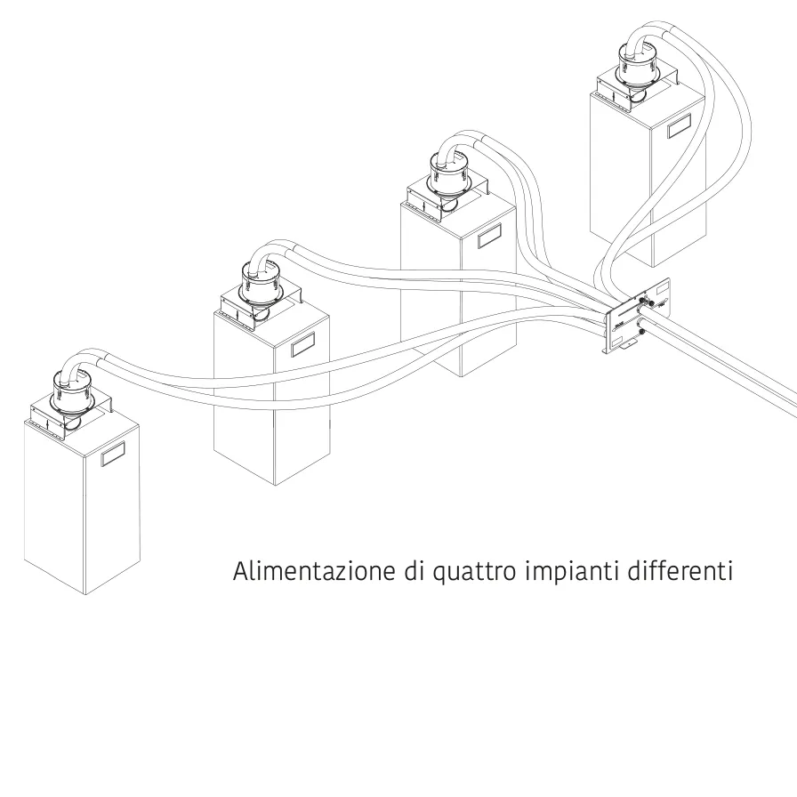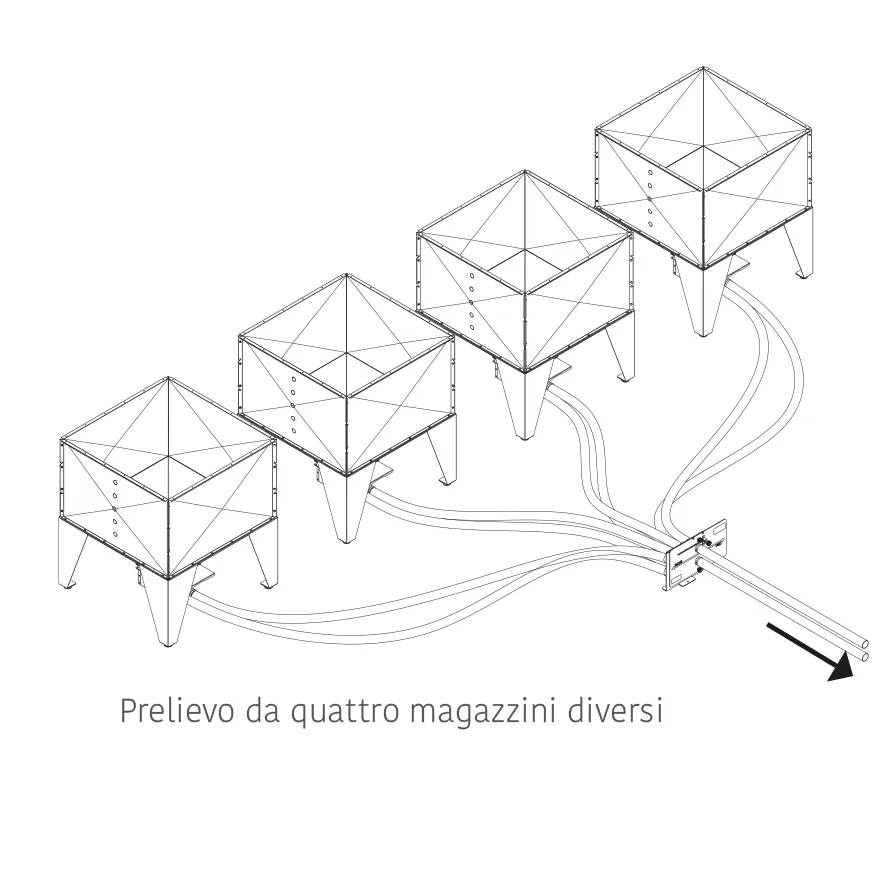 The manual selector is a highly adaptable component designed to enhance and stabilise biomass transport systems. Its internal architecture allows the unit to manage fuel routing with remarkable flexibility: it can draw biomass from two to four stock tanks, or divert fuel from a single stock tank to alternately feed two, three or four boilers, ensuring consistent supply in both residential and industrial contexts.