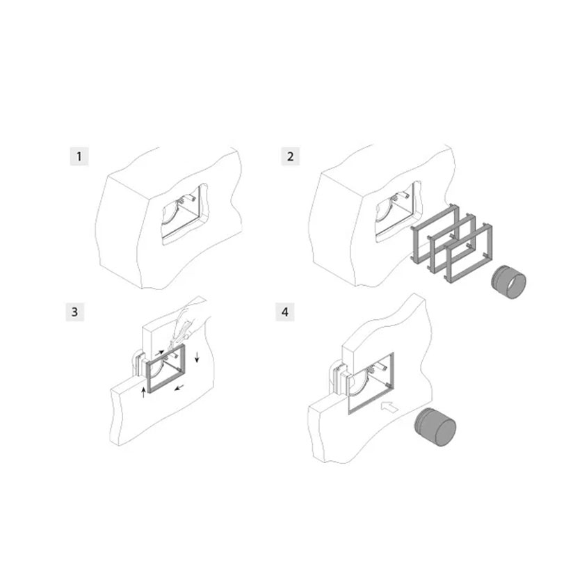 The rectangular backplate extension kit is designed to solve installation issues caused by uneven plaster or deep wall recesses. When the backplate is recessed compared to the wall surface, the kit allows you to extend the support area of the vacuum inlet, ensuring a stable and secure installation.
