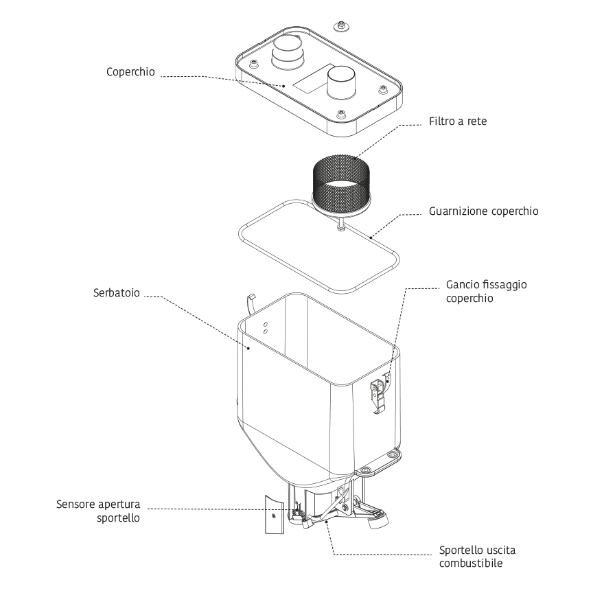 The system is supplied with a positioning template, enabling quick and accurate mounting on the boiler hopper. The slim configuration makes it ideal for installations where space is limited but performance must remain high.