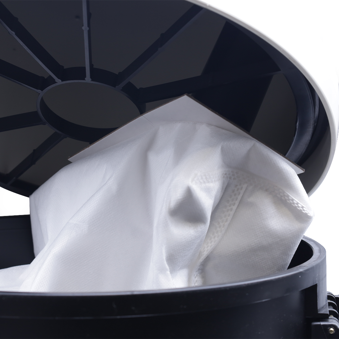 • Uses non woven filter bags designed to trap residual dust.