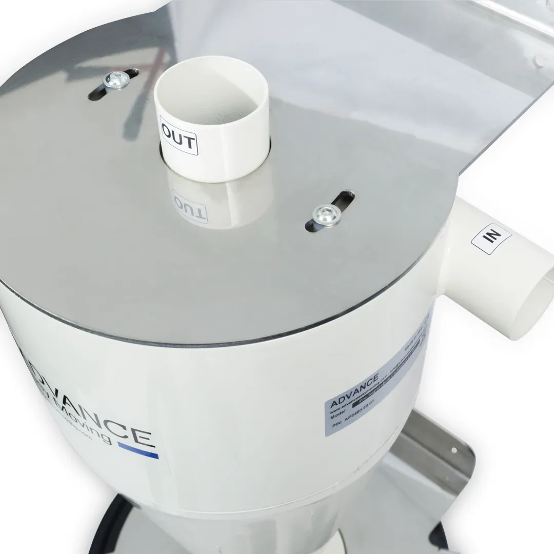 Turbix Small cyclonic pre separator designed for powdery combustible materials. Retains over 98 percent of dust and protects filters and motors for stable long term performance.